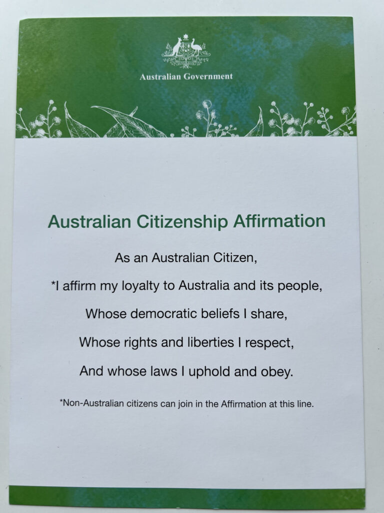 We then read the Australian Citizenship Pledge. Version 1 goes like this: